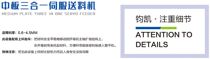 三合一送料機(jī)集送料、矯正、料架三機(jī)一體全自動送料裝置,高技術(shù),高精密,高效率,在沖床周邊設(shè)備系列產(chǎn)品上可說是矯正送料機(jī)的頂點(diǎn)表現(xiàn),其功能及優(yōu)點(diǎn)特多,省空間,耐用,操作簡單,對特長、特寬、較厚材料等效果特別好,在工業(yè)界一致被認(rèn)為先進(jìn)之自動送料裝置。